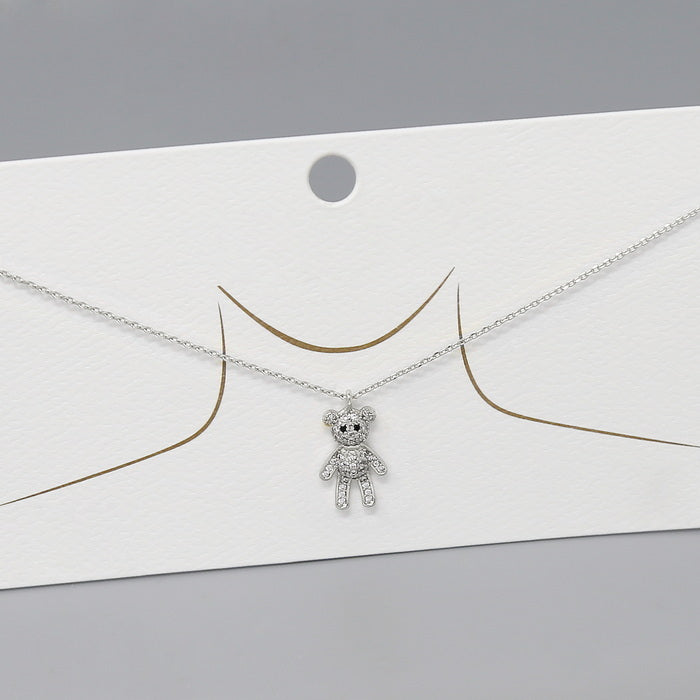 Teddy Bear CZ Pave Pendant Short Chain Necklace