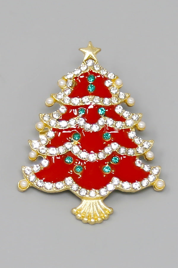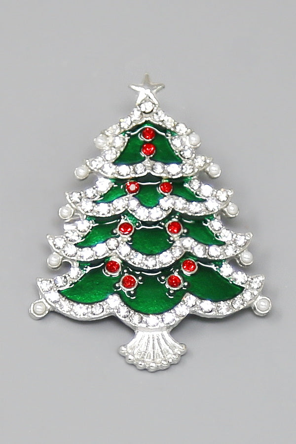Christmas Tree Pearl & Glass Stone Embellished Brooch
