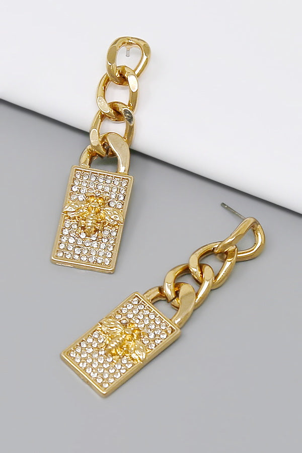 Bee Detail Metal Dangle Earrings
