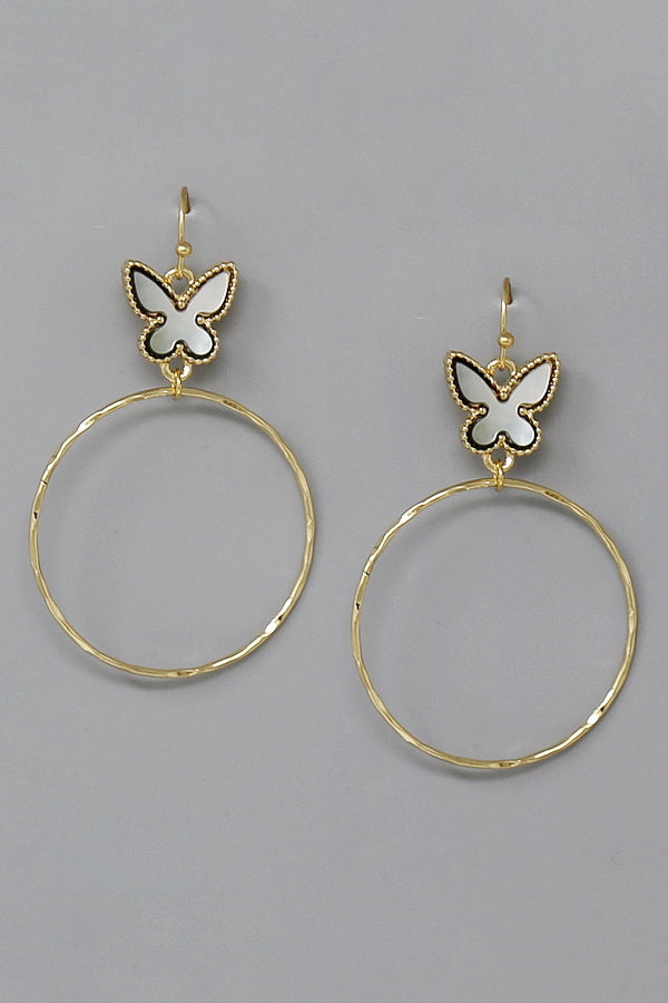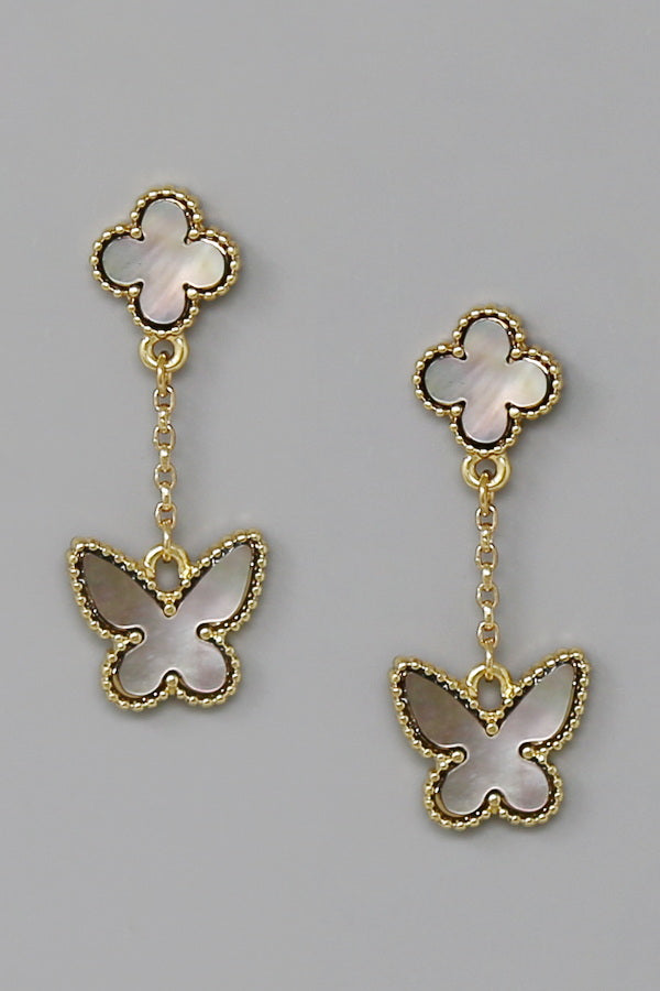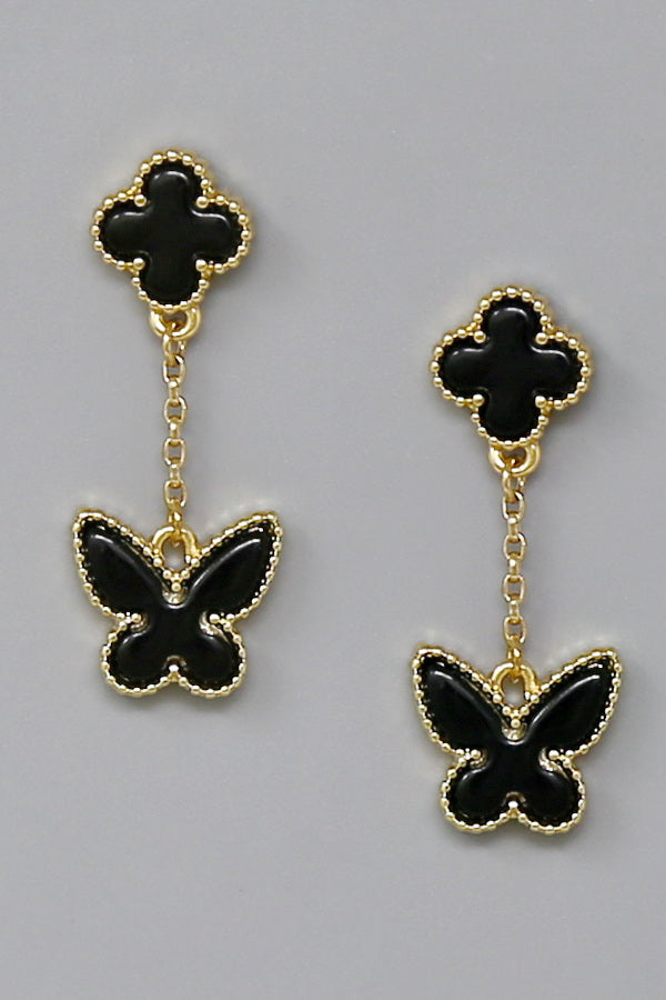 Flower Buttefly Metal Stud & Hoop Earring Set