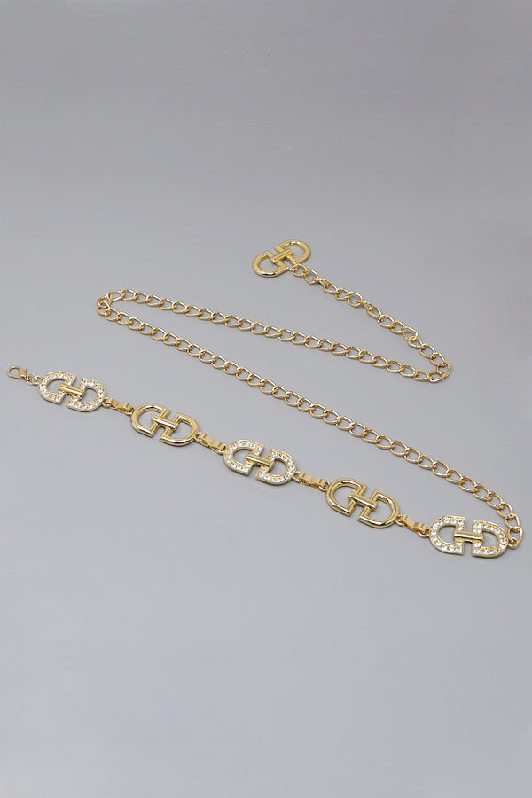 Pave Half Disc Circle Glass Stone Embellished Accent Belt