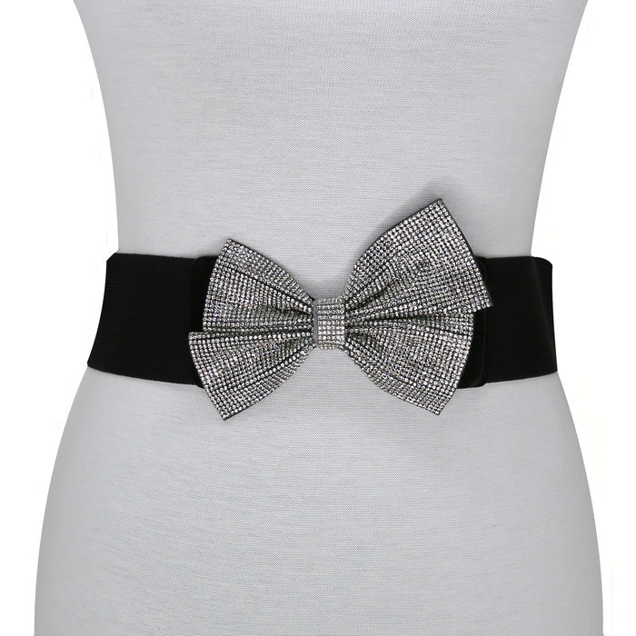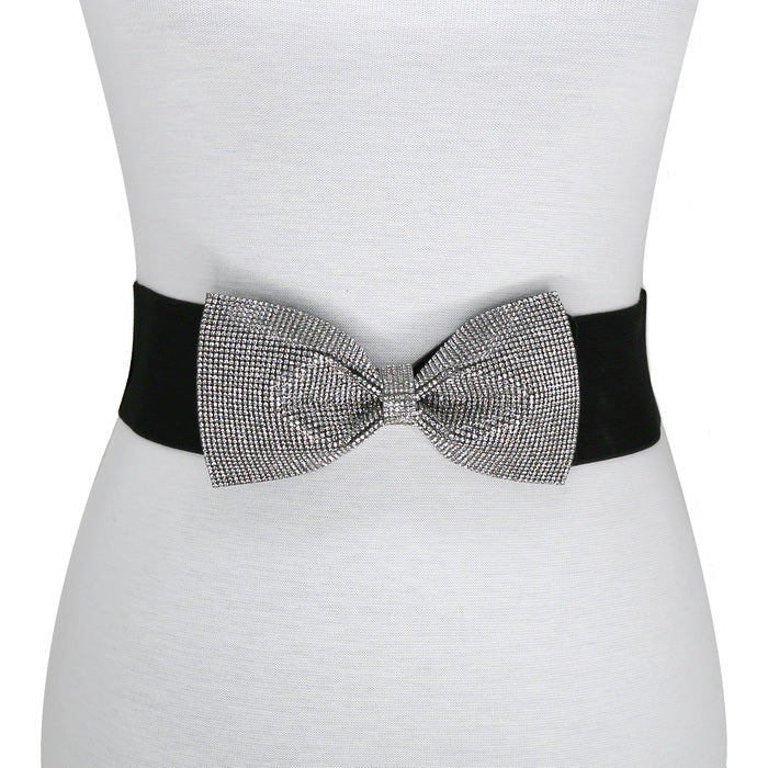 Rhoinestone Bow Ribbon Accent Stretch Belt