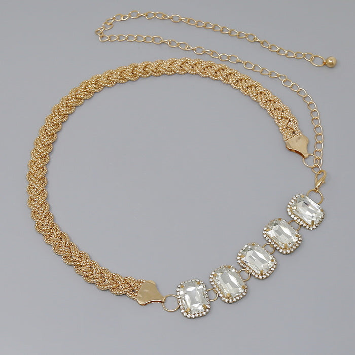 Rectangular Glass Stone Braided Chain Decorative Belt