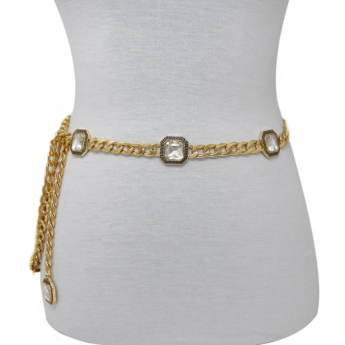 Square Glass Stone Curb Chain Accent Belt