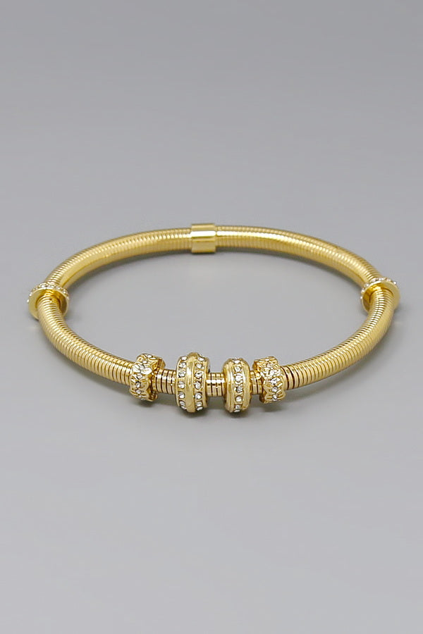 Stone Pave Ring Charm Spring Bangle Bracelet