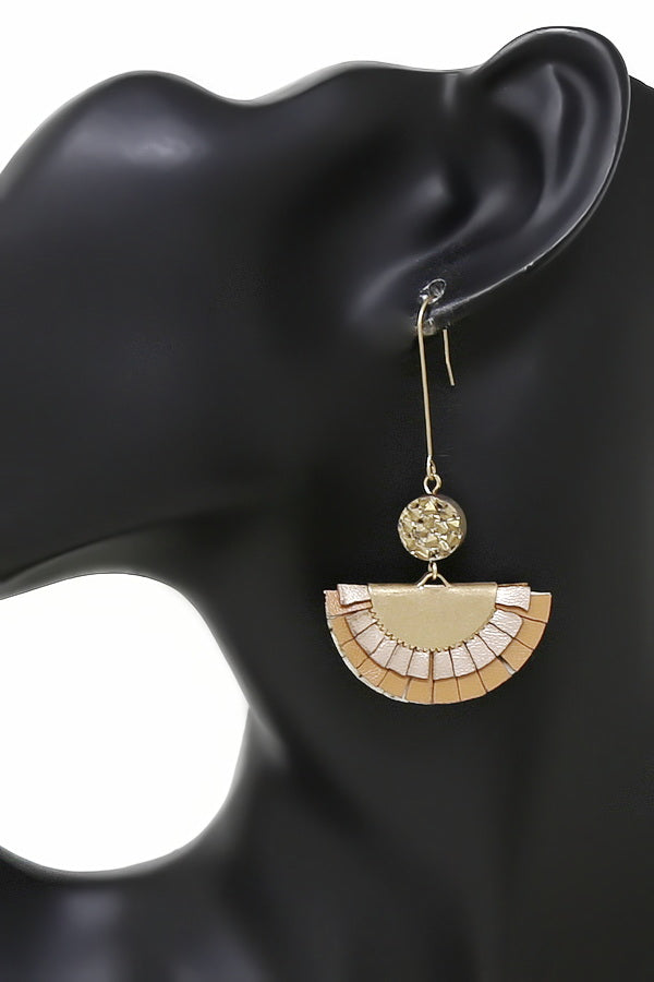 Druzy Stone Leather Fringe Drop Earrings