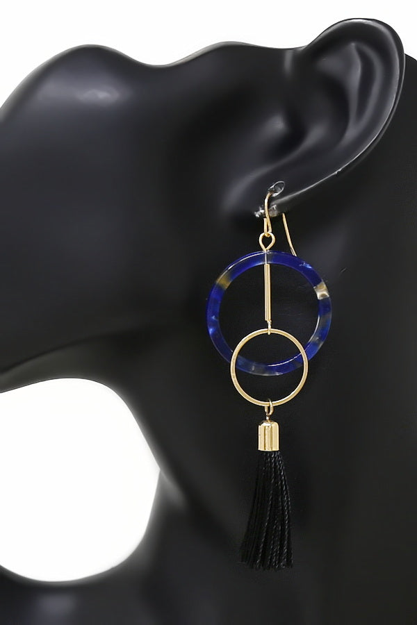 Resin Hoop Tassel Drop Earrings