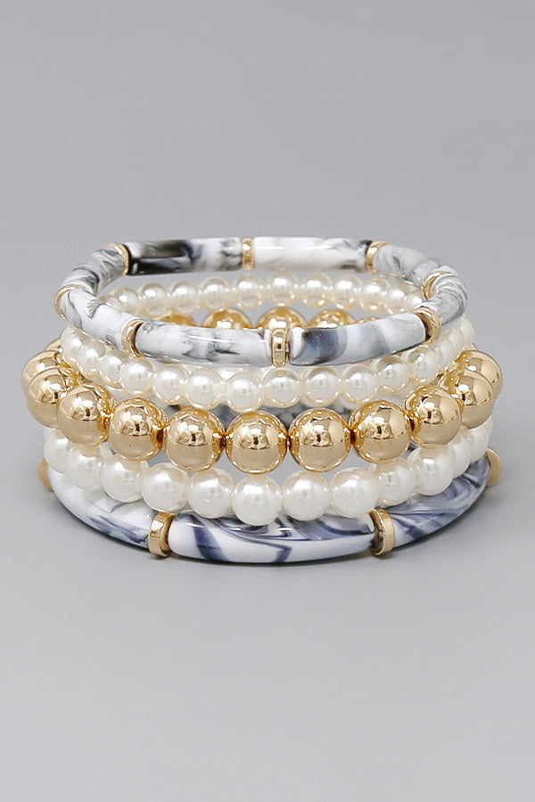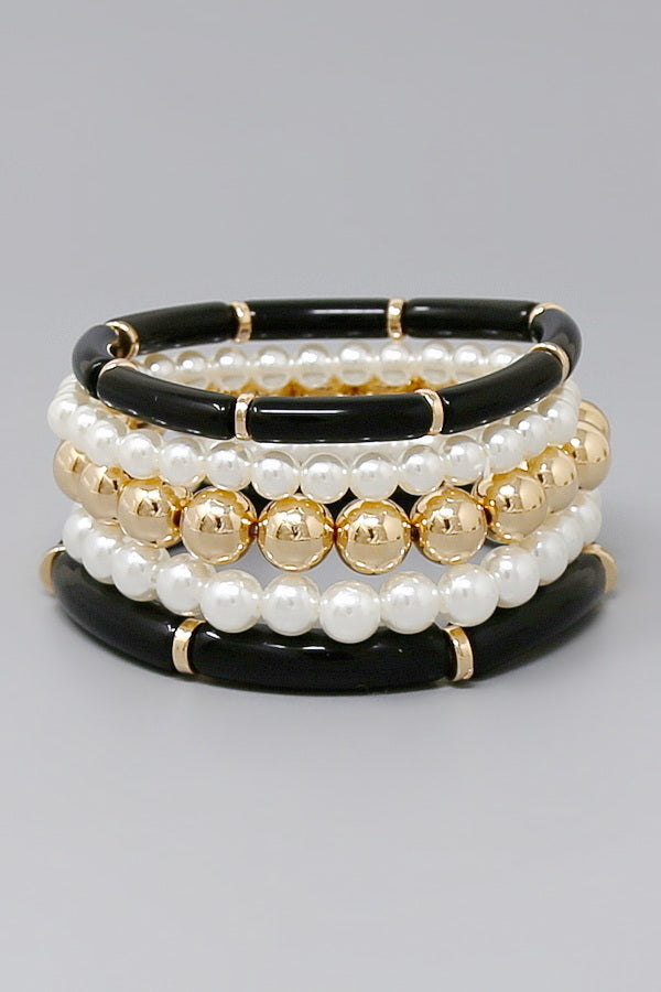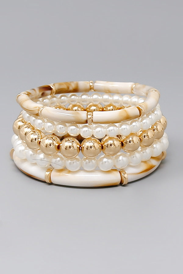 Acrylic Tube Pearl & Metal Bead Bracelet Set