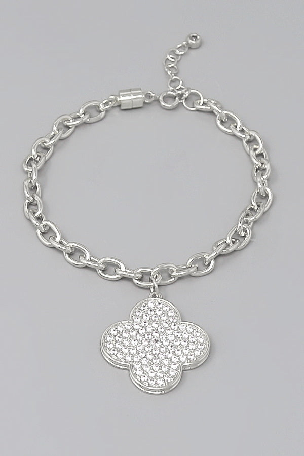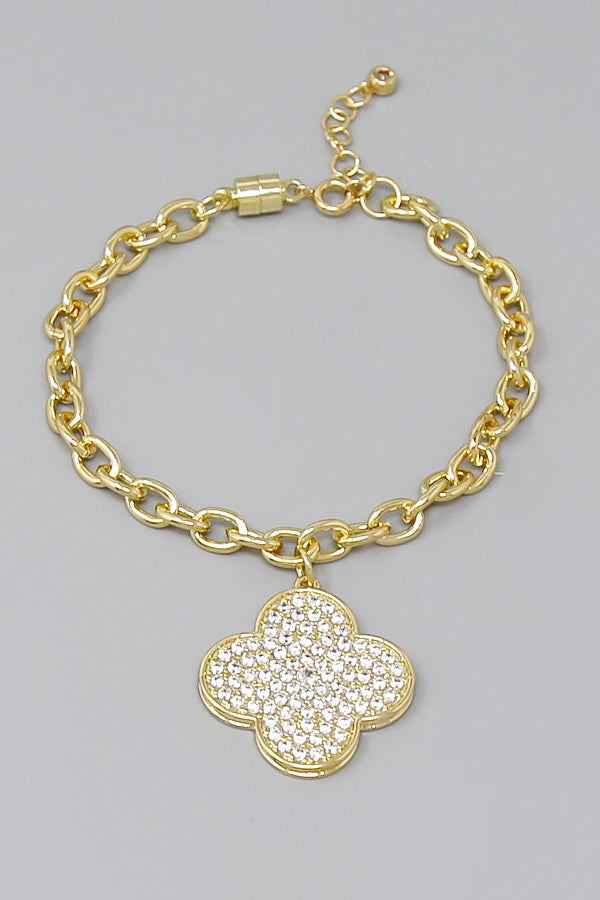 Pave Clover Chunky Charm Gold Dipped Magnetic Bracelet