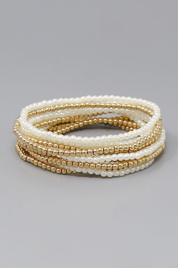 Pearl And CC Ball Beaded Stretch Bracelet Set
