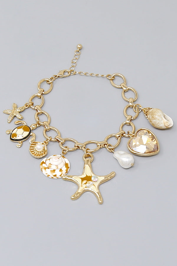 Sea Multi Charm Linked Chain Bracelet