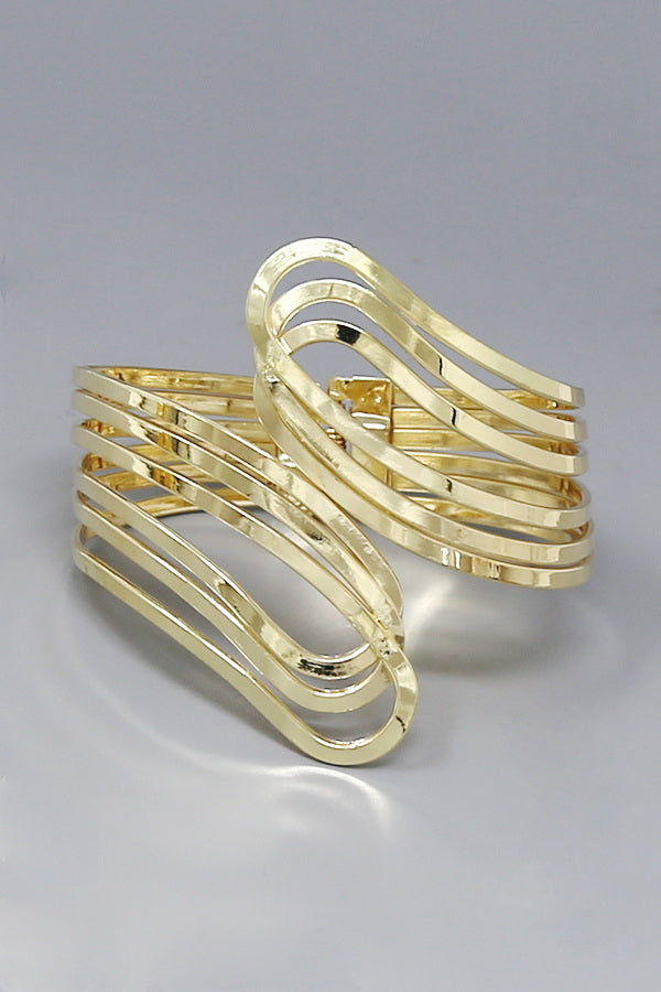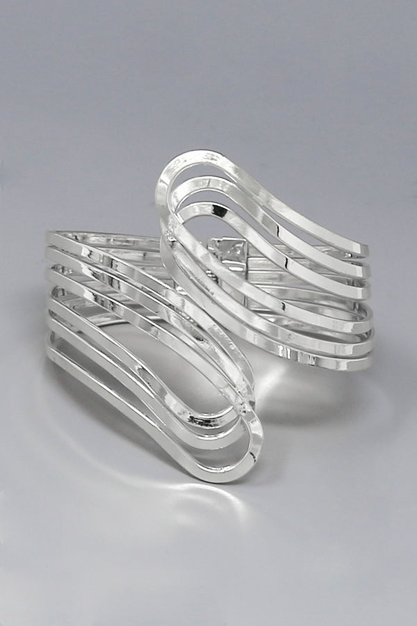 Wave Multi Wire Metal Hinged Cuff Bracelet