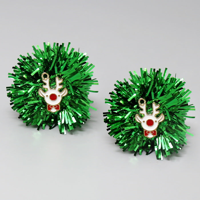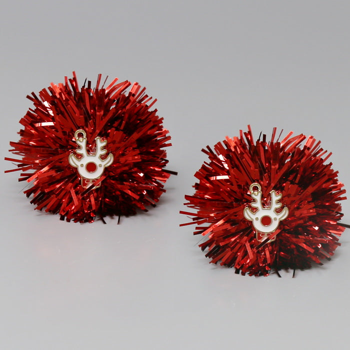 Christmas Reindeer Oversize Tinsel Pom Earrings
