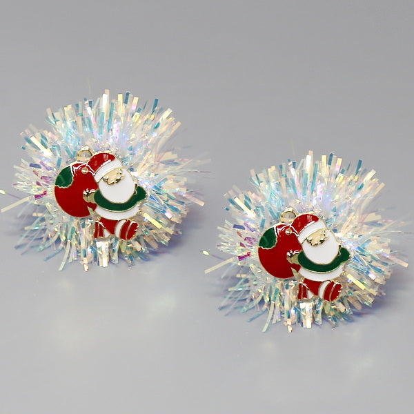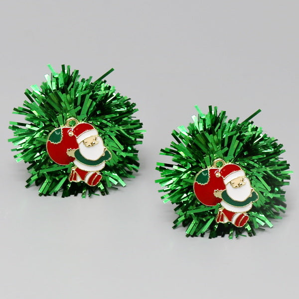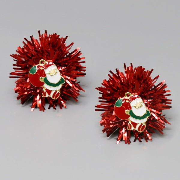 Christmas Santa Oversize Tinsel Pom Earrings