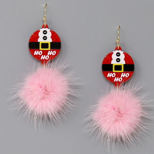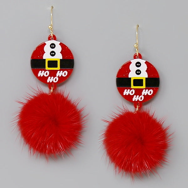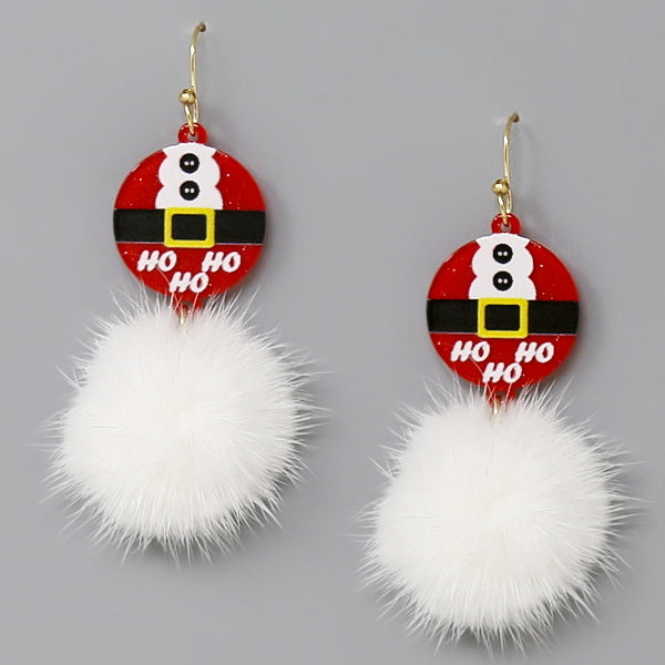 Christmas Santa Suit Fur Pom Earrings