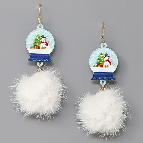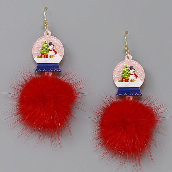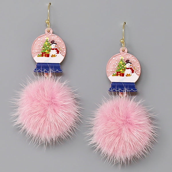 Christmas Snowball Fur Pom Earrings