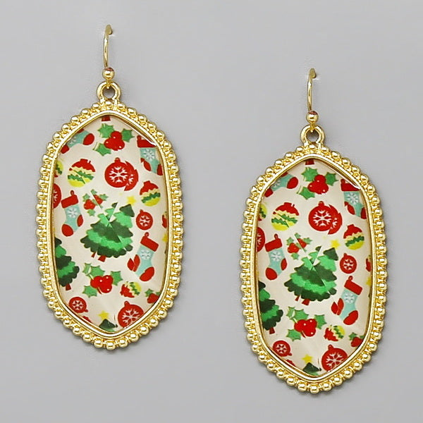 Christmas Theme Hexagon Dangle Earrings