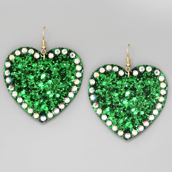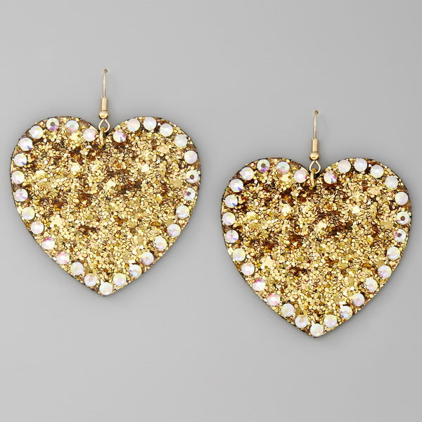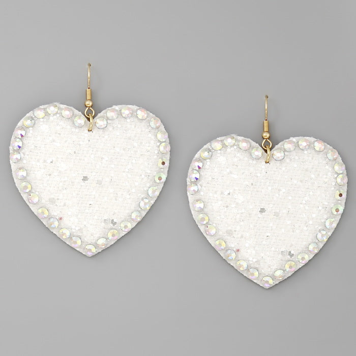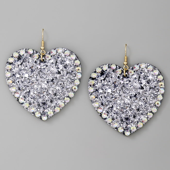 Glass Stone Embellished Glitter Heart Drop Earrings