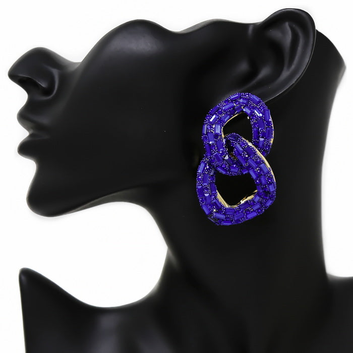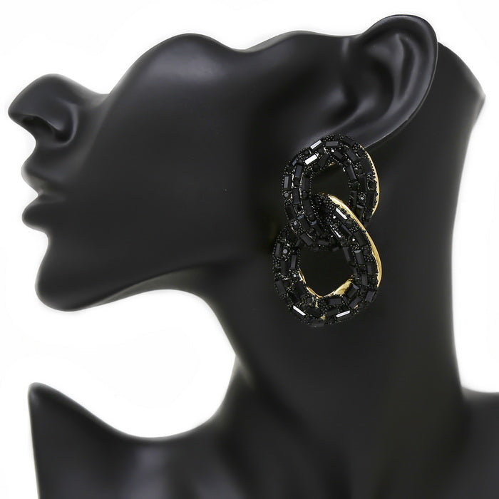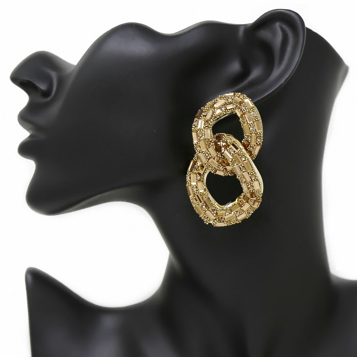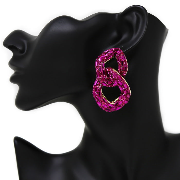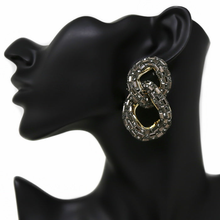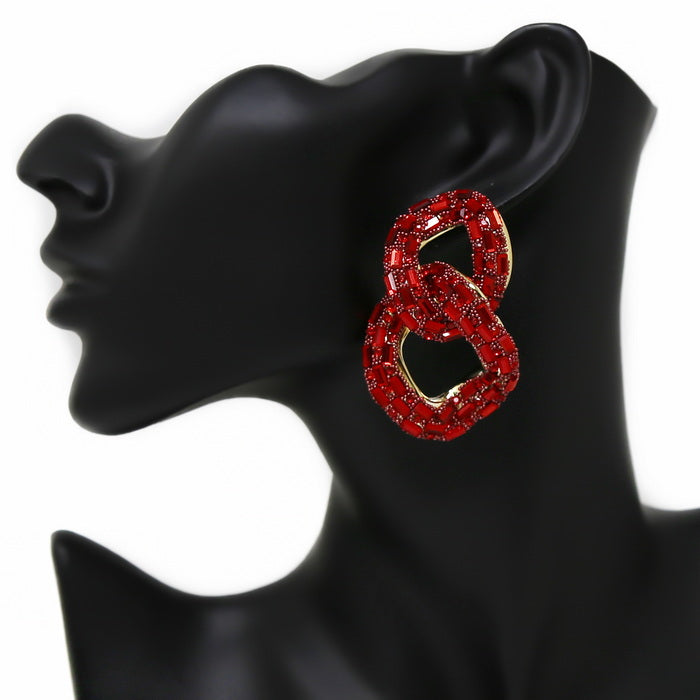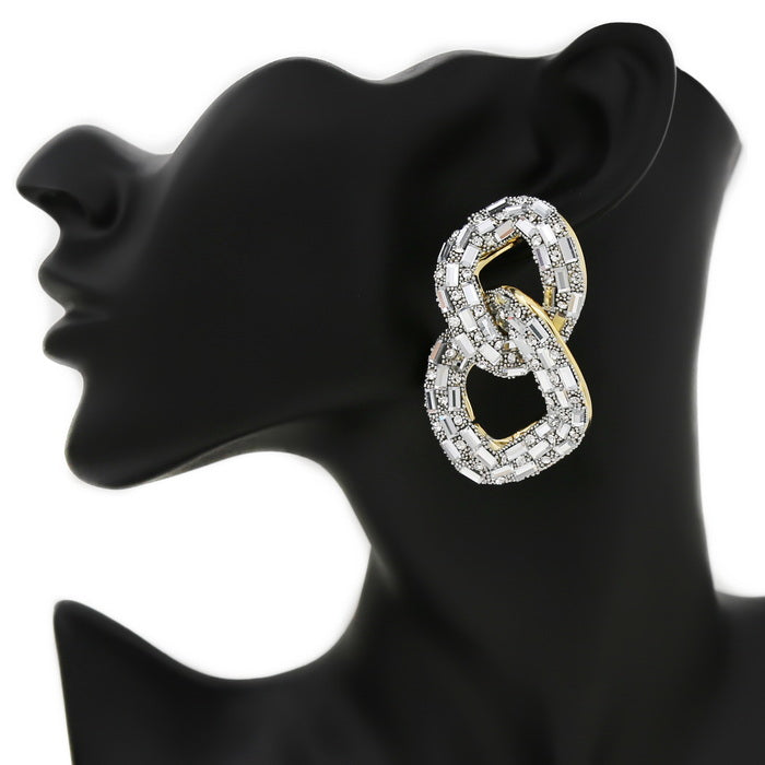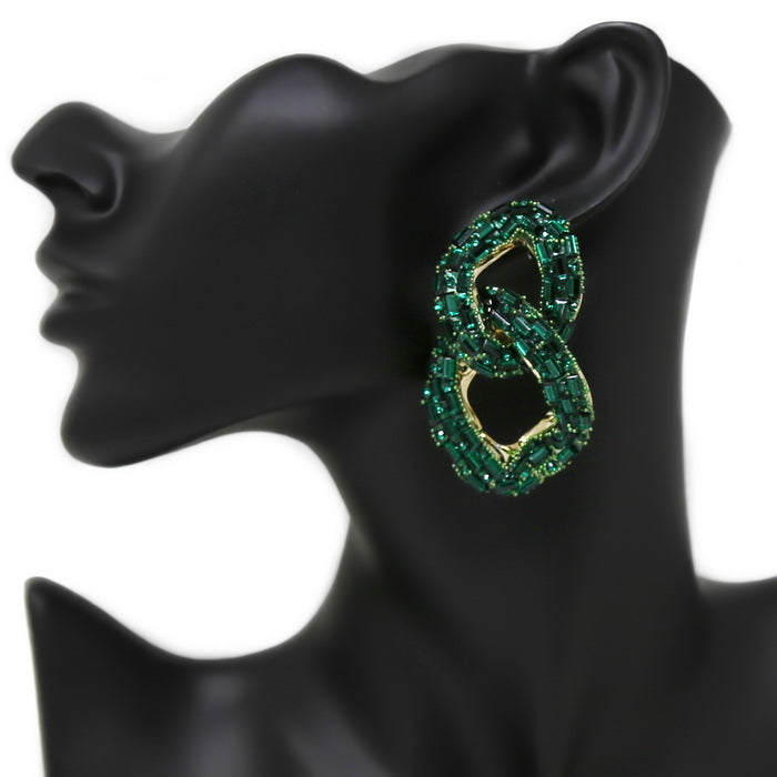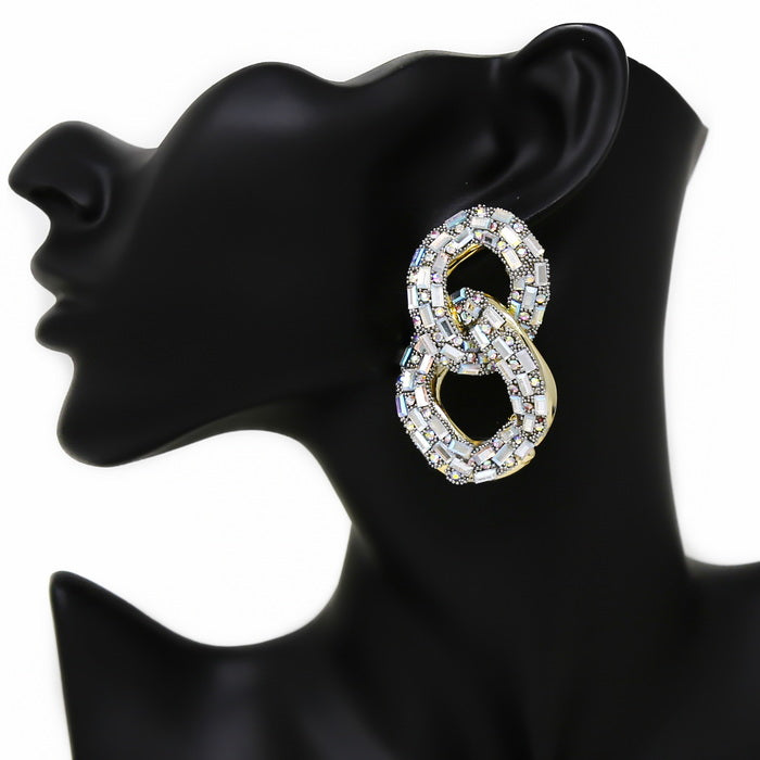 Glass Stone Pave Chunky Link Drop Earrings