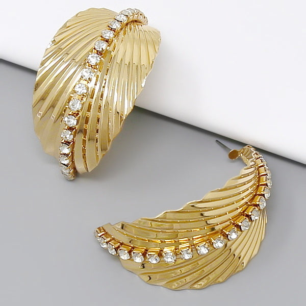 Glass Stone Thread Leaf Texture Hoop Earrings