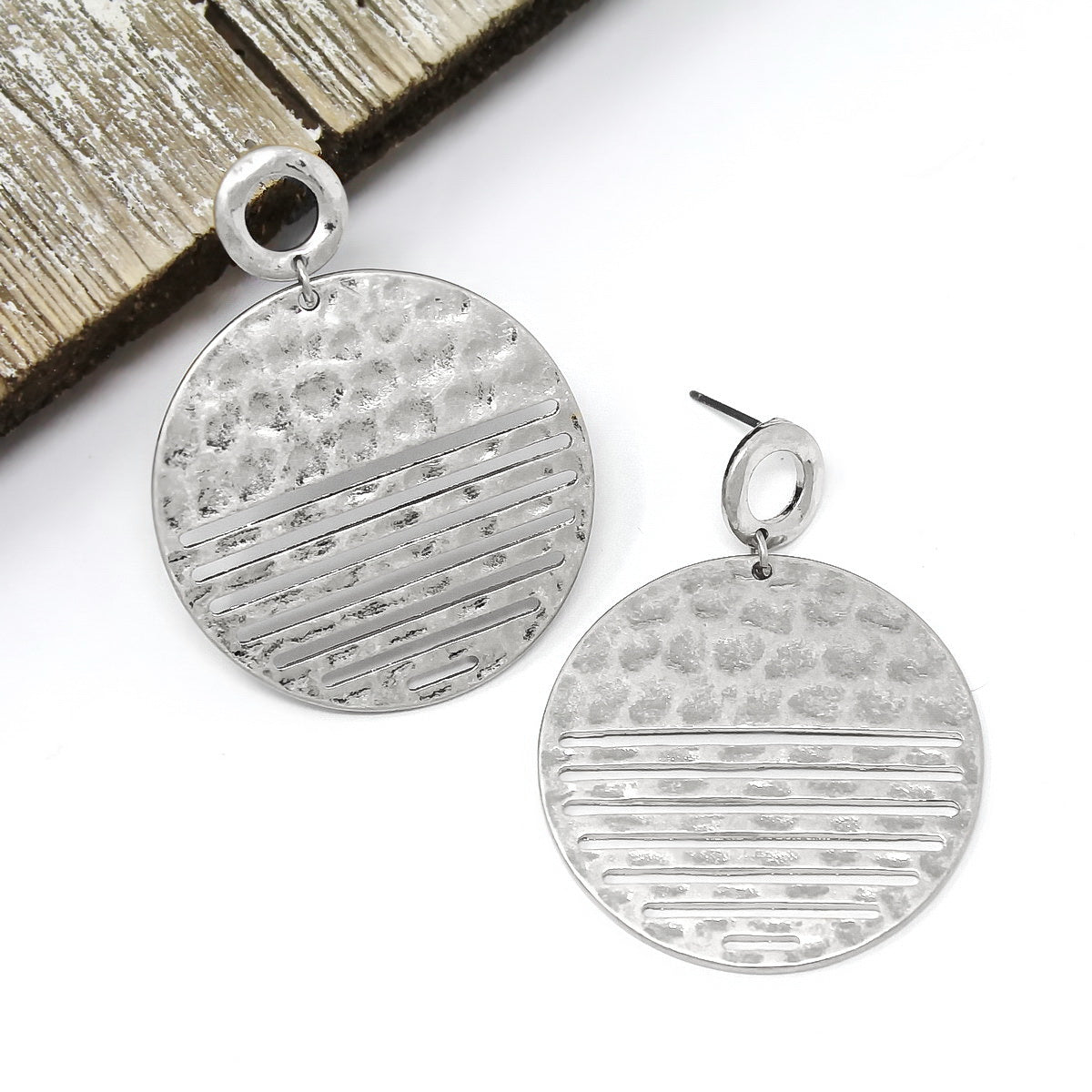 Hammered Metal Disc Shape Drop Earrings