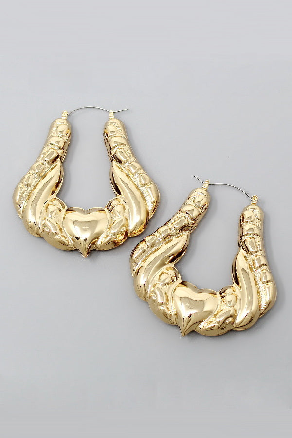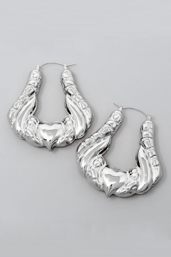 Heart Twisted Metal Bamboo Hoop Earrings