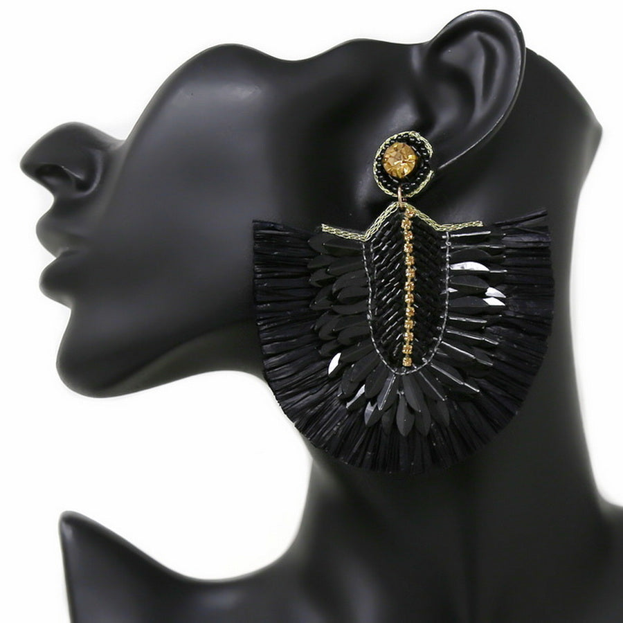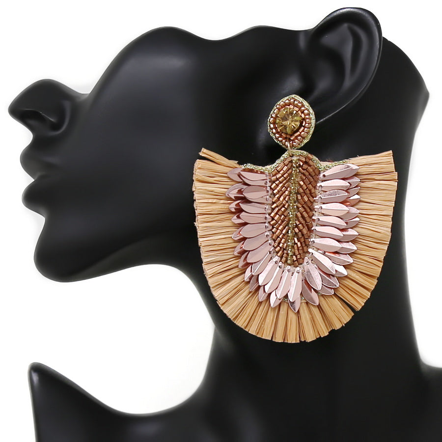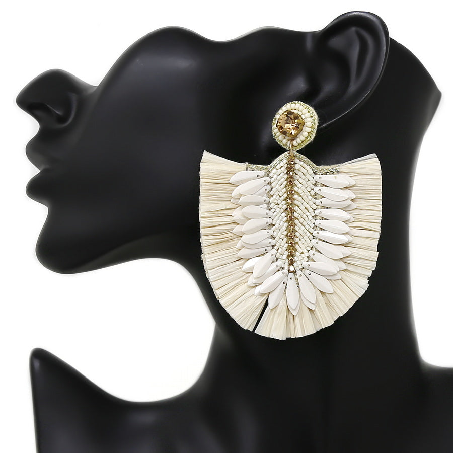 - Material: Lead compliant plated metal, glass, raffia, seed bead