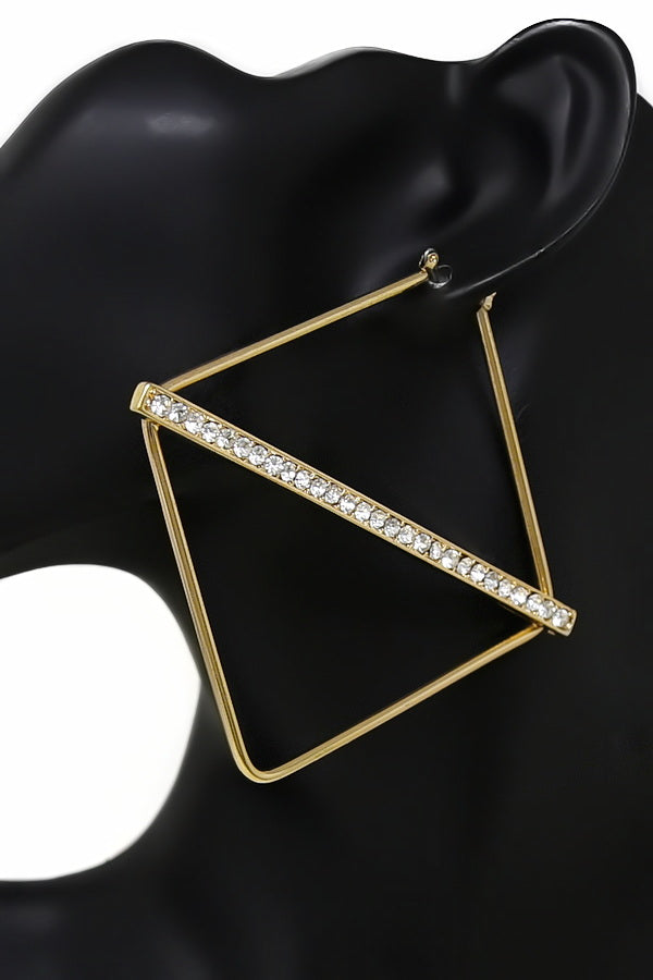 Rhombus Shape Rhinestone Bar Hoop Earrings