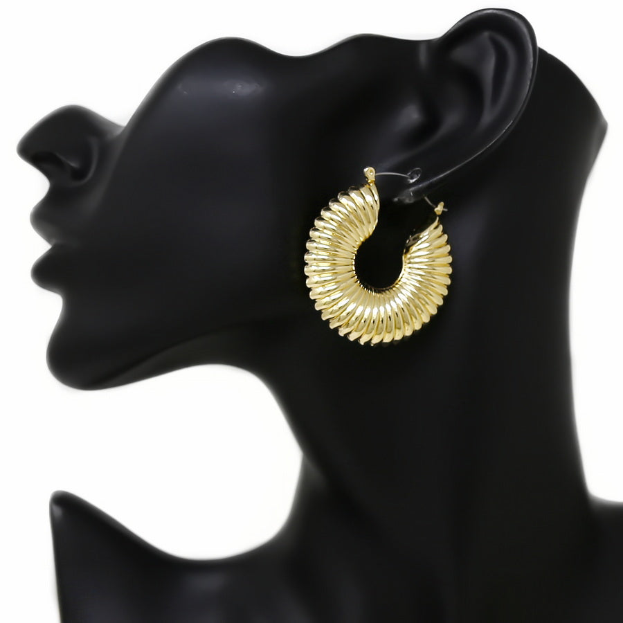 Ribbed Textured Metal Hoop Earrings