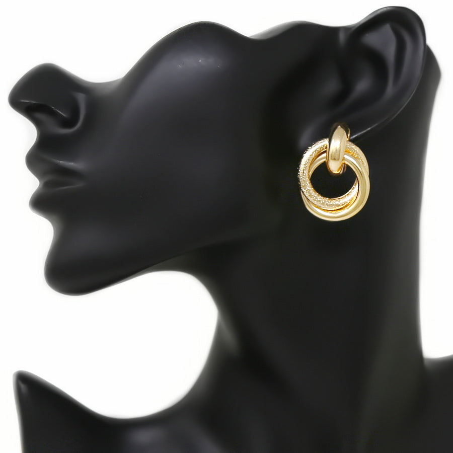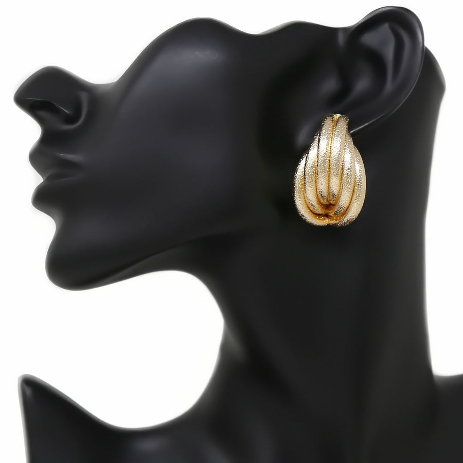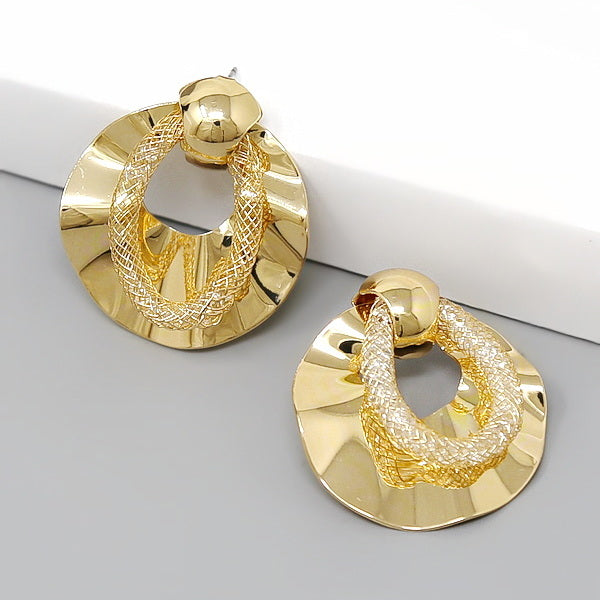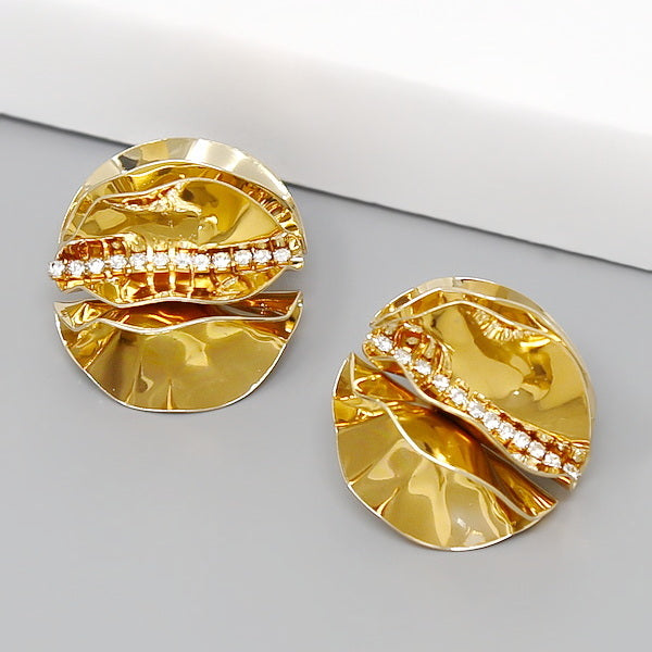 Glass Stone Thread Leaf Texture Hoop Earrings