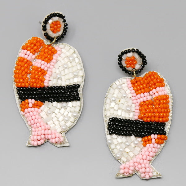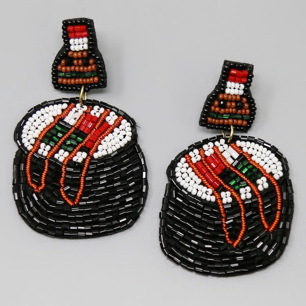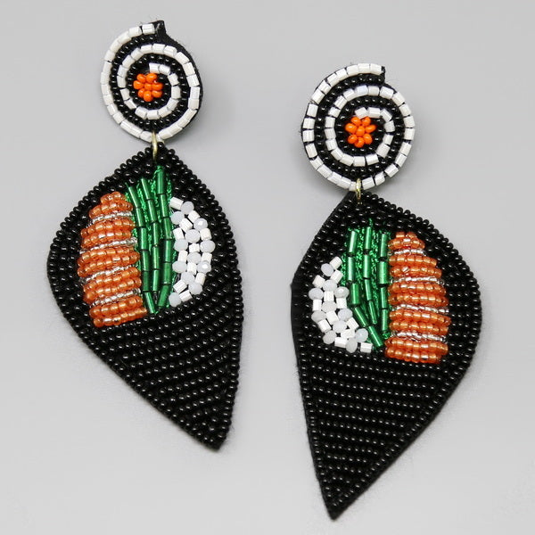 Maki Roll Sushi Seed Beaded Drop Earrings