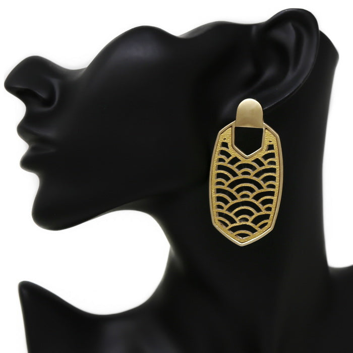 Bamboo Trapeze Metal Hoop Drop Earrings