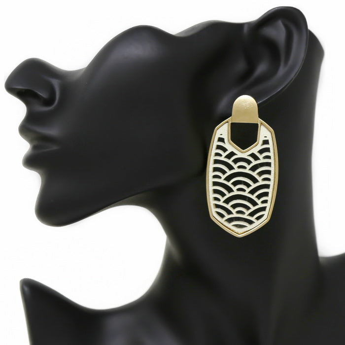Glass Stone Pave Greek Pattern Enamel Plate Drop Earrings