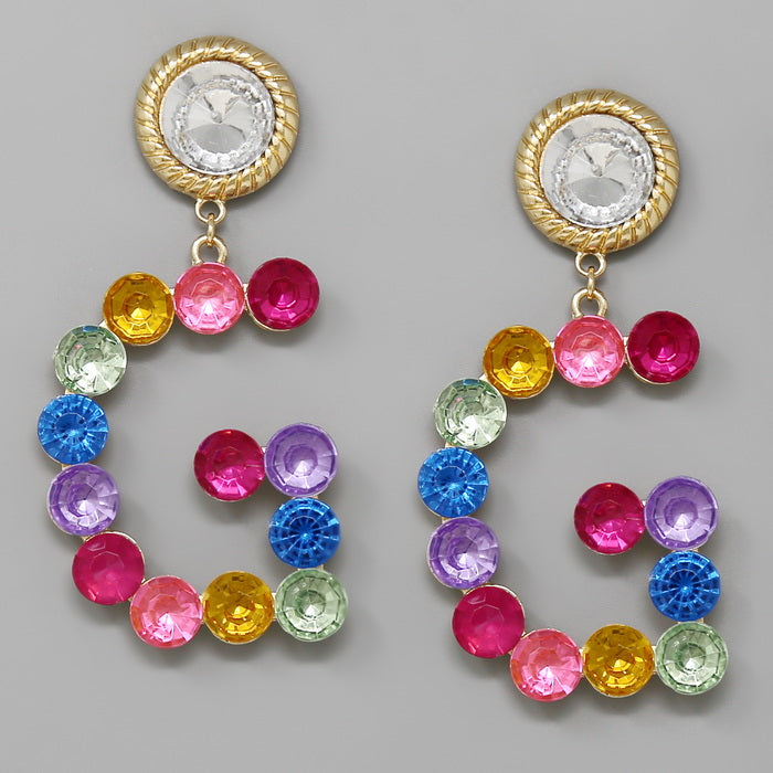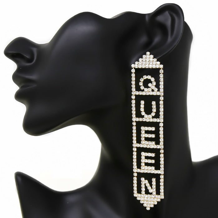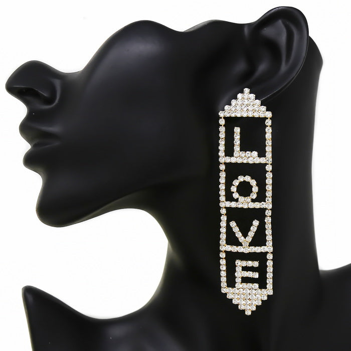 Glass Stone Embellished Rhombus Shape Statement Stud Earrings