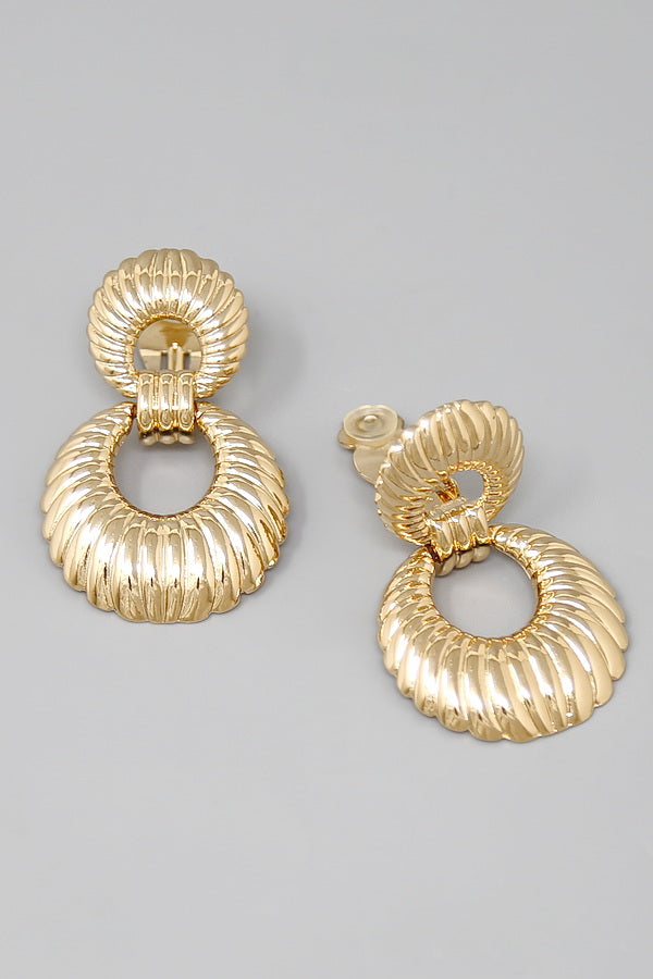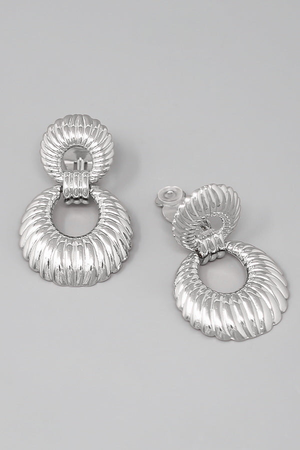 Ribbed Metal Hoop Clip On Earrings
