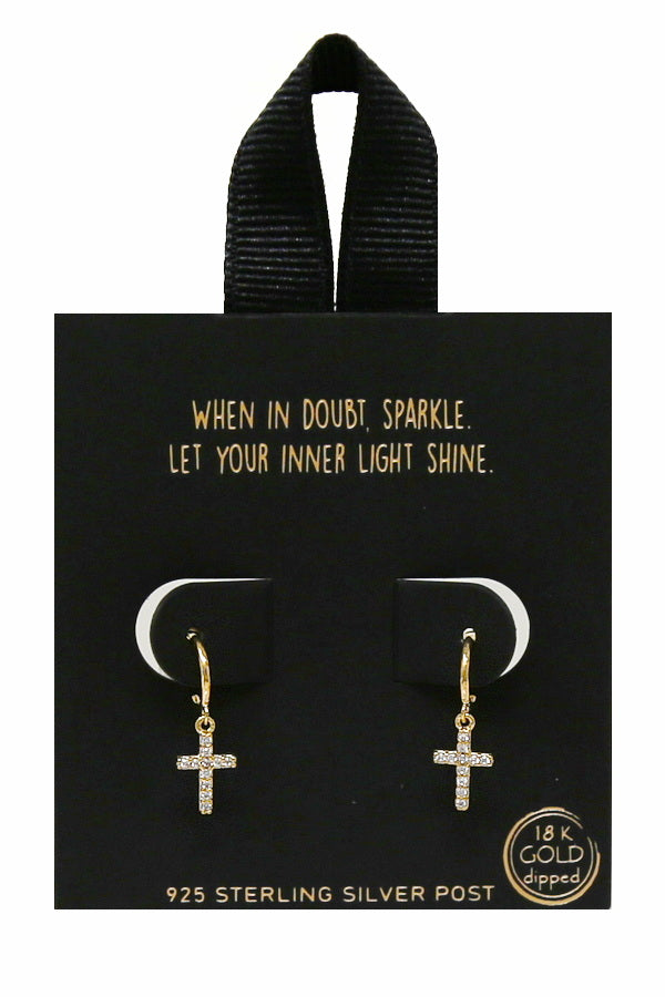CZ Cross Charm Mini Hoop Earrings