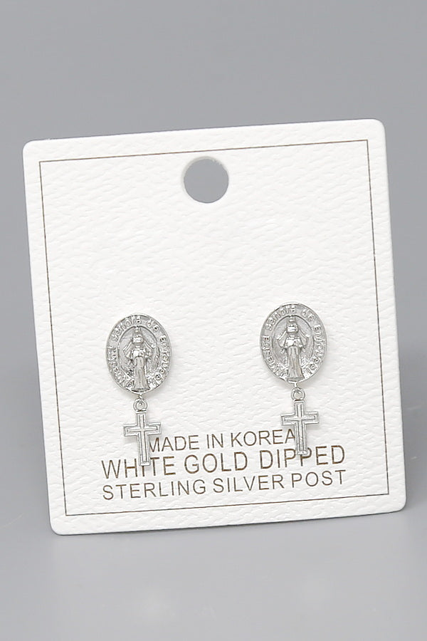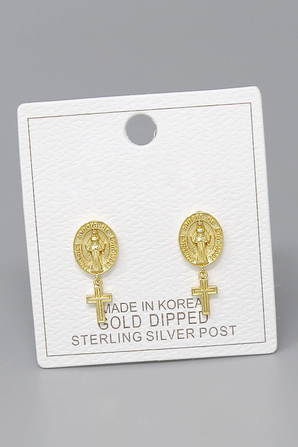 Religious Cross Drop Gold Dipped Earrings