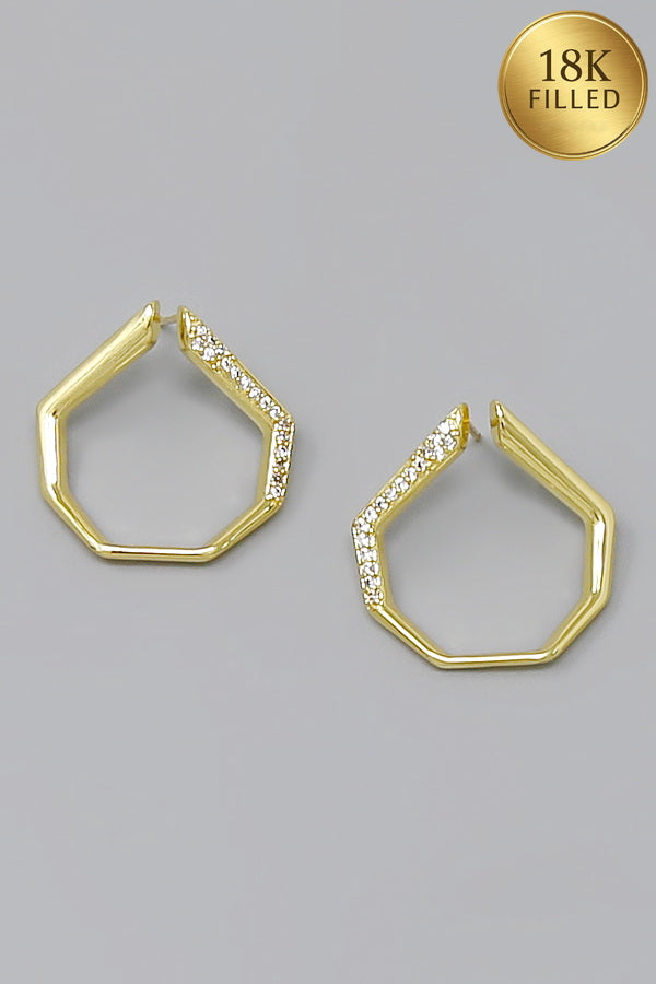 18K Gold Filled Pave Geometric Hoop Earrings