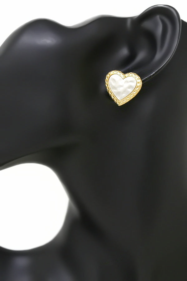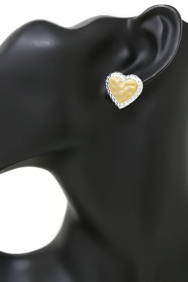 Heart Hammered Metal Stud Earrings