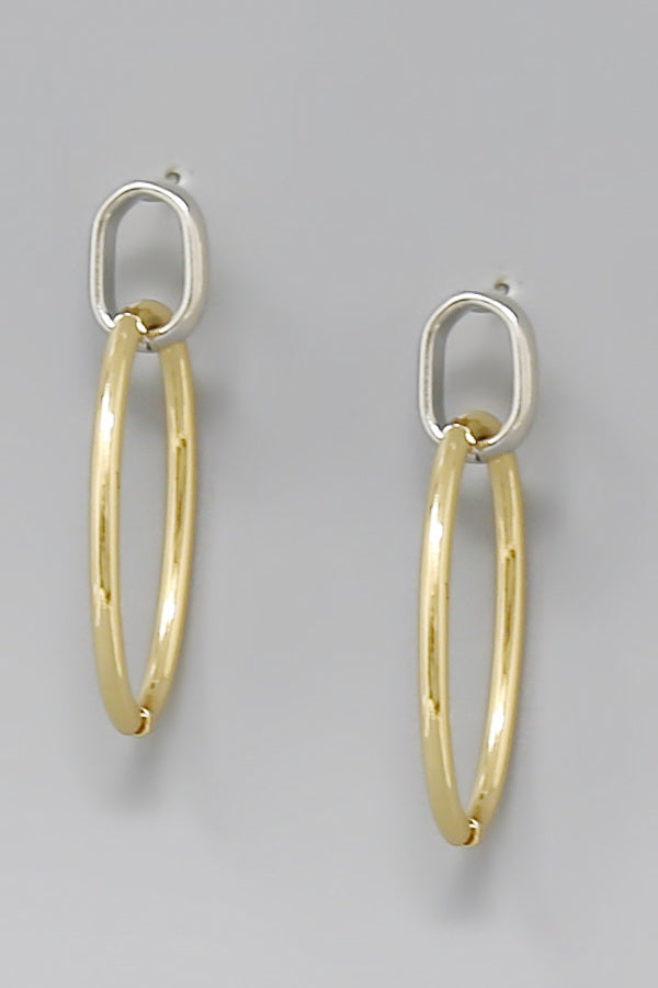 Oval Hoop Two Tone Gold Dipped Drop Earrings