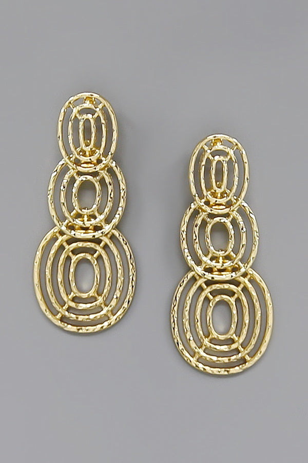 Oval Linked Hammered Metal Dangle Earrings
