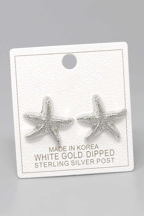Textured Starfish Gold Dipped Stud Earrings