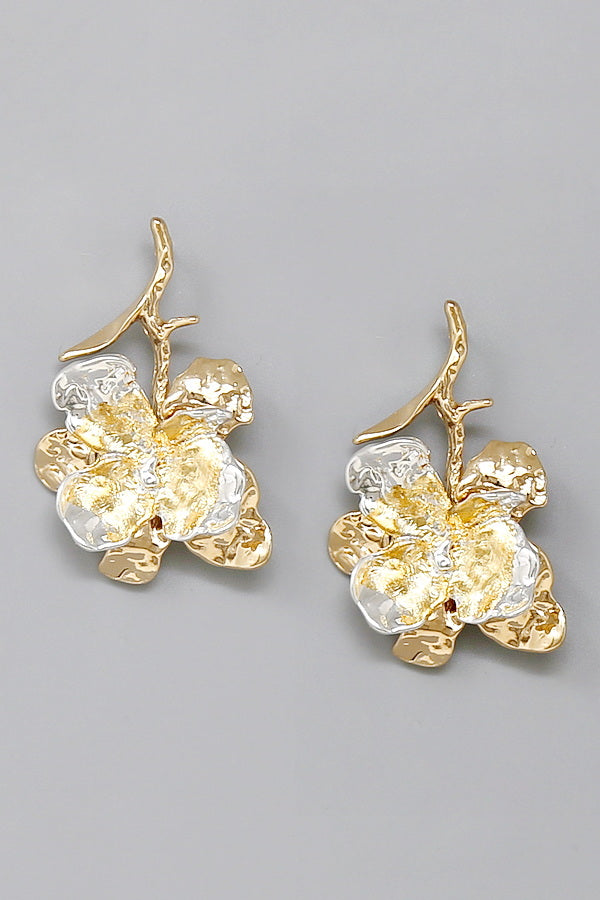 Two Tone Metal Flower Dangle Earrings
