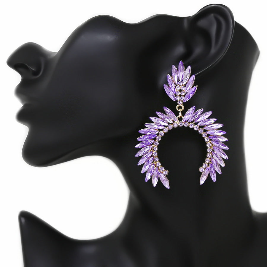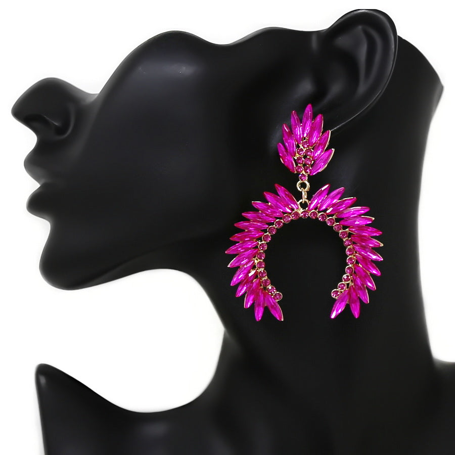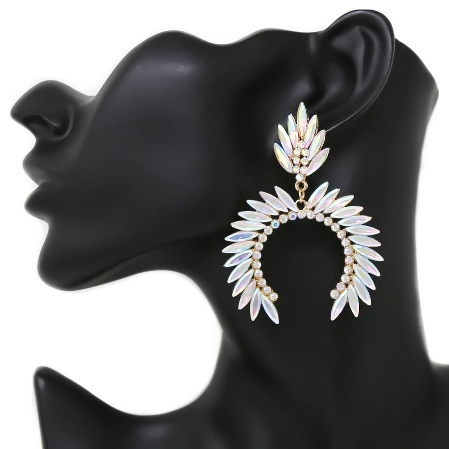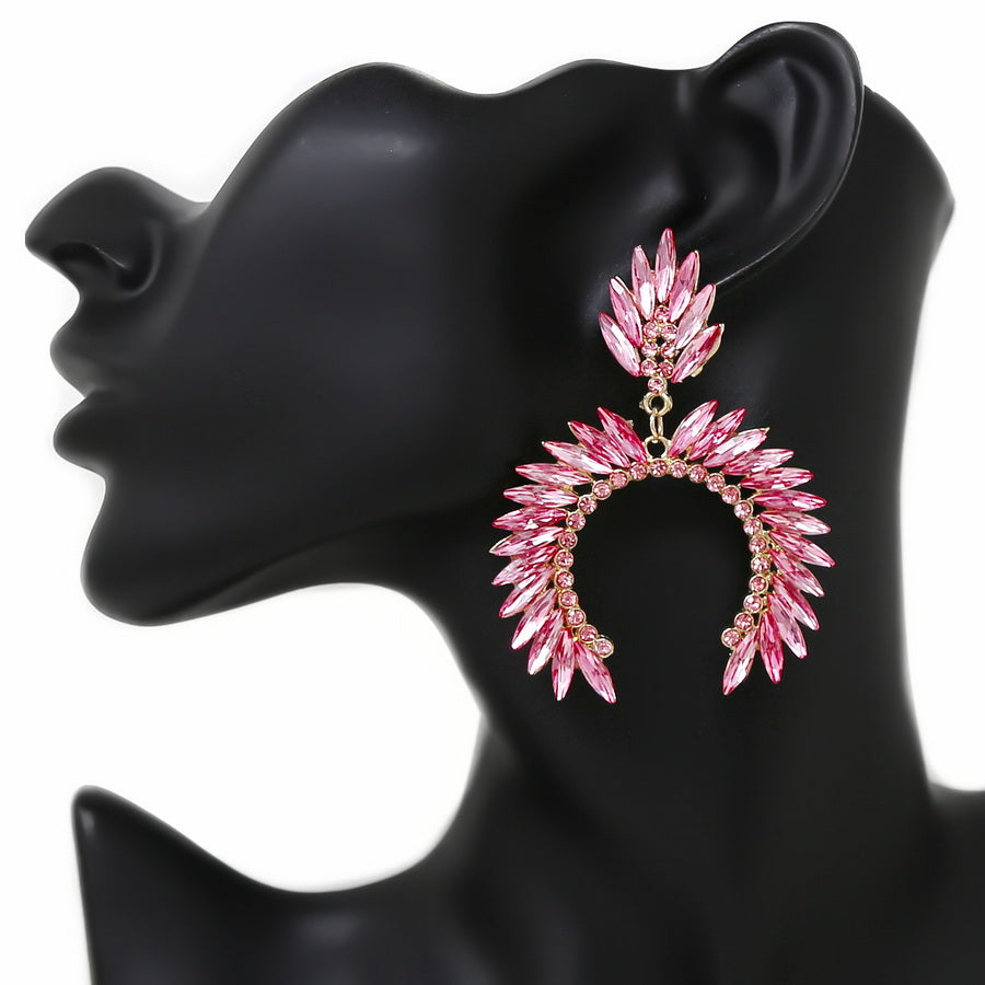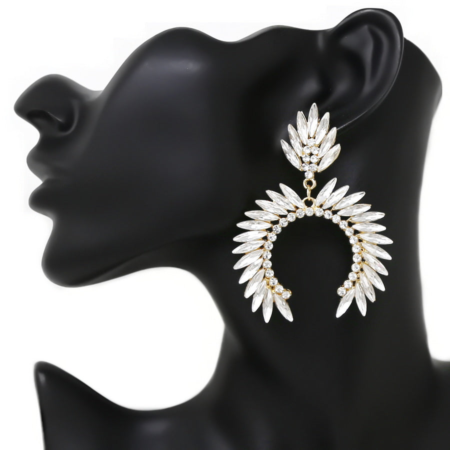 Arched Marquise Glass Stone Embellished Statement Earrings