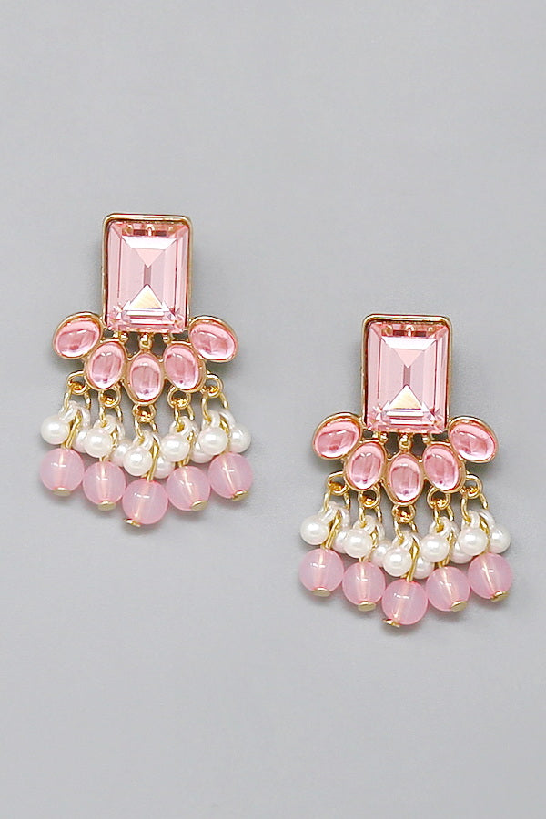 Beaded Pearl Fringe Acrylic Dangle Earrings
