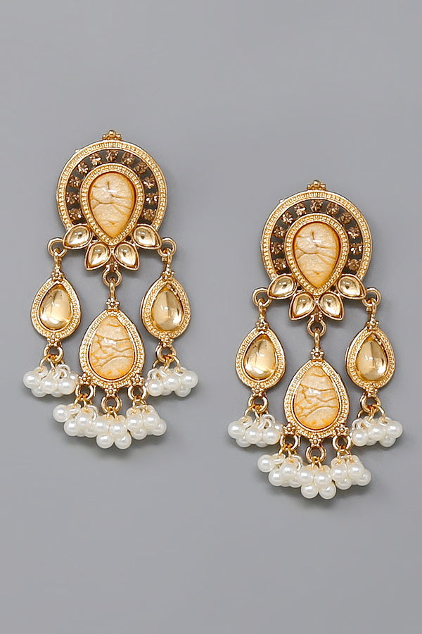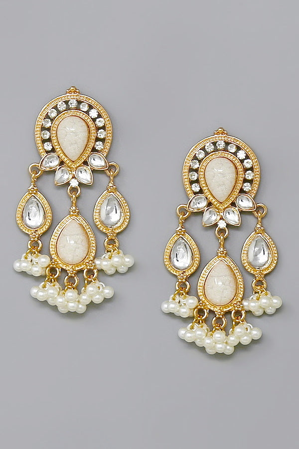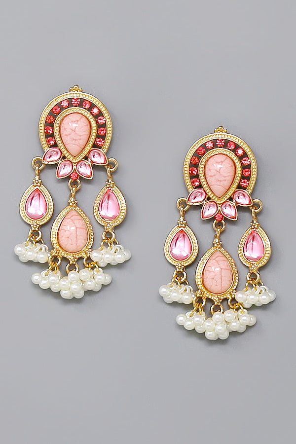 Beaded Pearl Fringe Chandelier Earrings