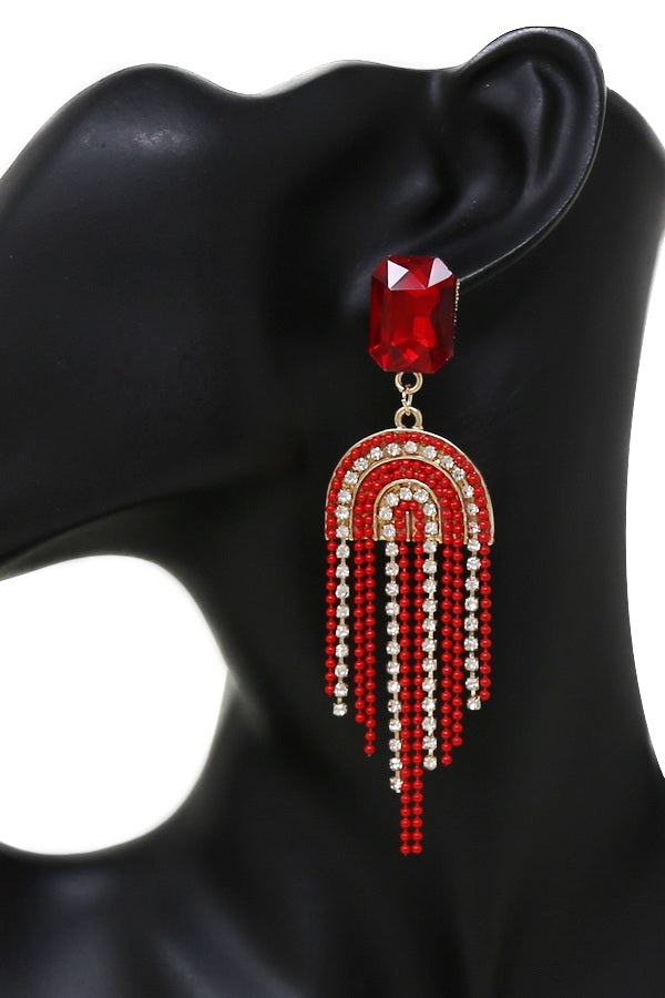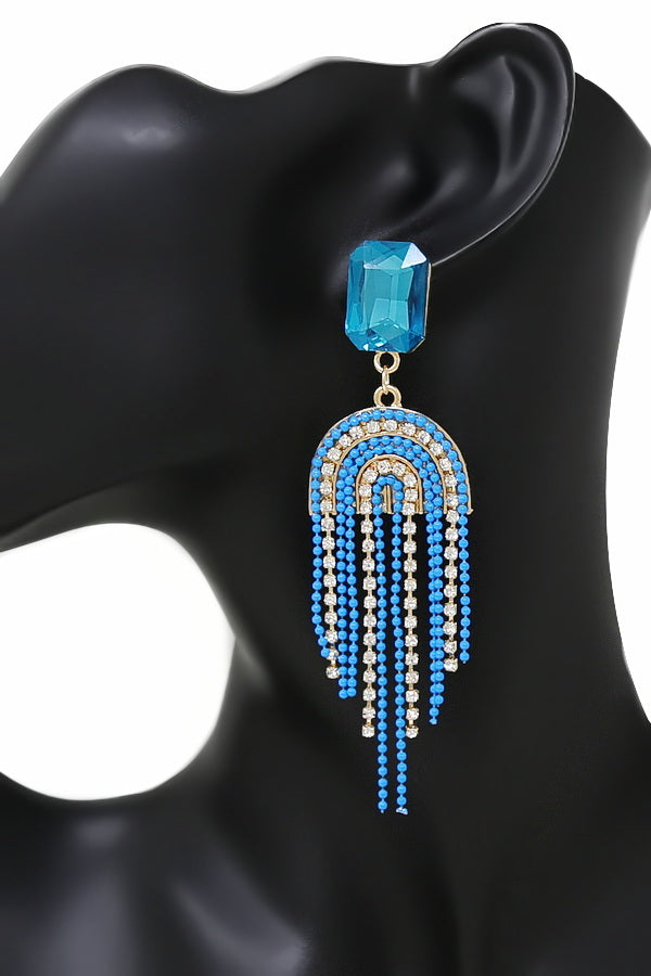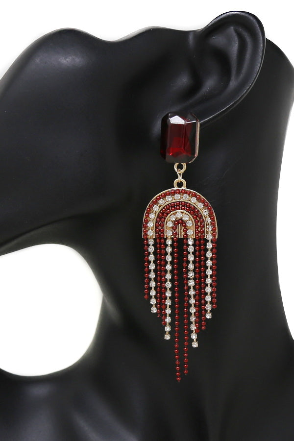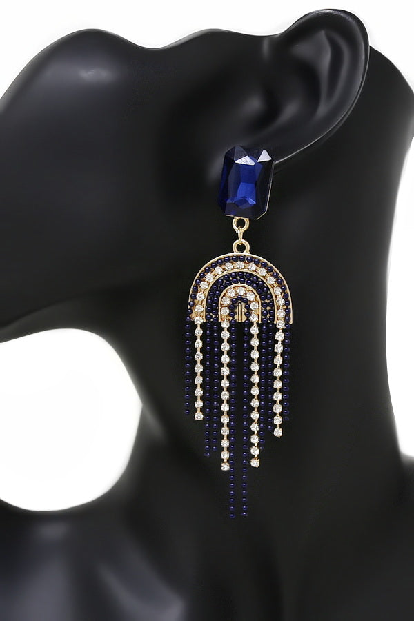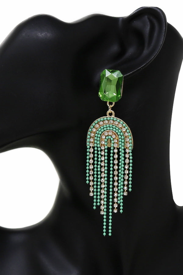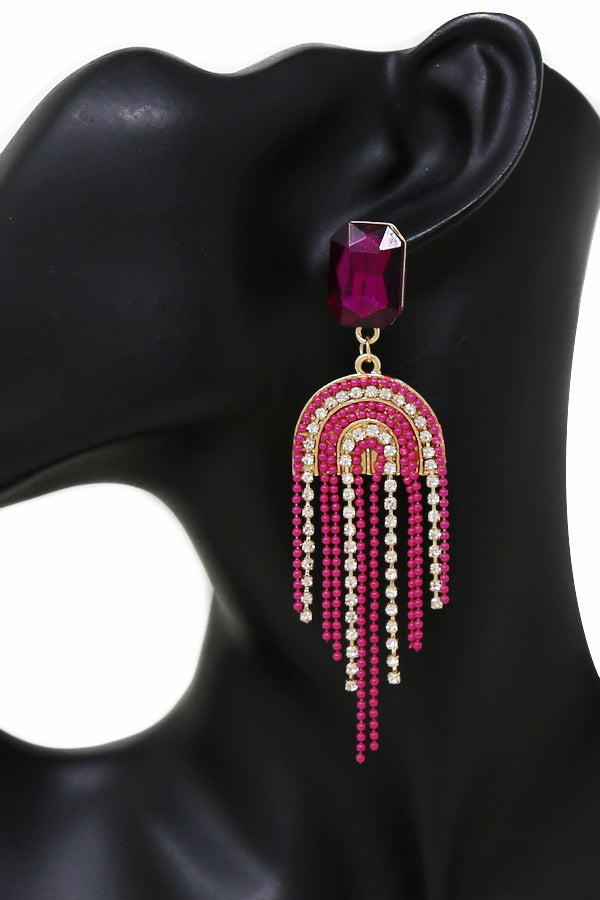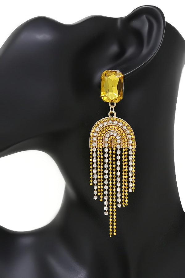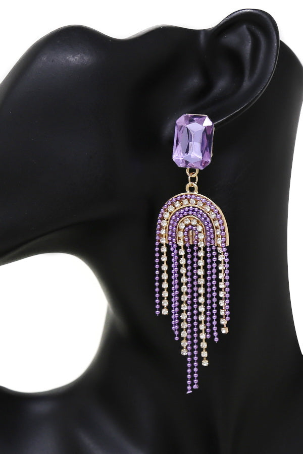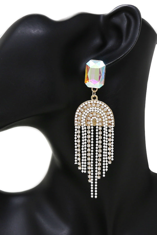 Chain And Rhinestone Fringe Dangle Earrings