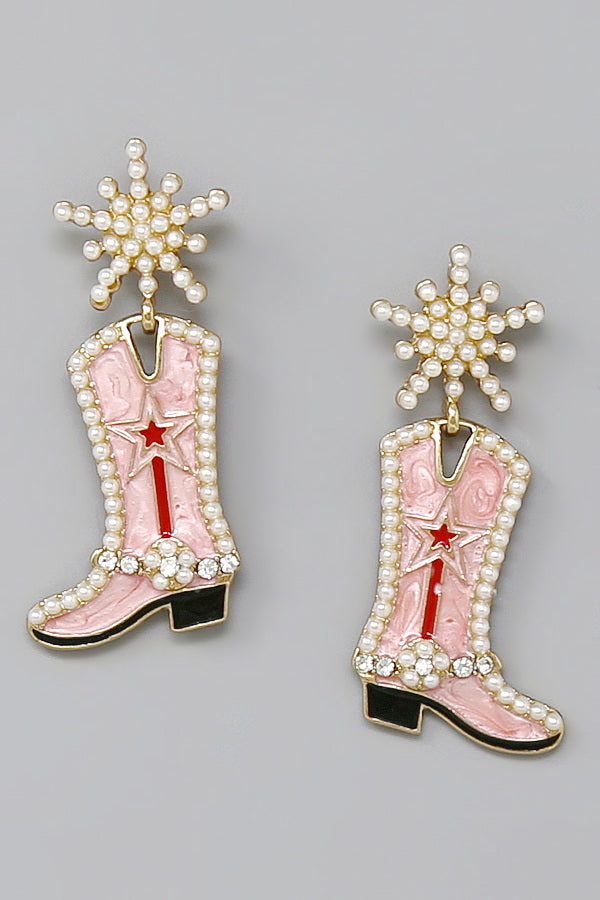 Cowgirl Boot Enamel Drop Earrings