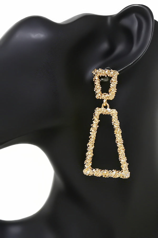 Crumpled Metal Geometric Hoop Drop Earrings