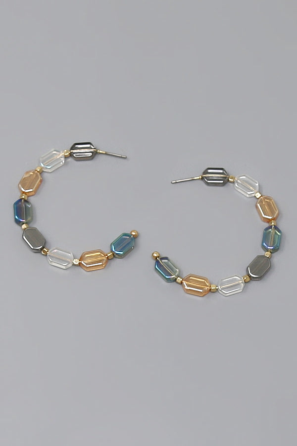 Flattened Bead Hoop Earrings